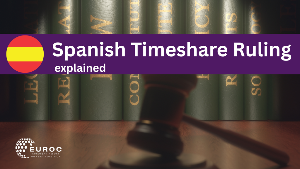 Il 30 ottobre 2025 la Corte Suprema spagnola ha emesso una sentenza sulla validità dei contratti di multiproprietà, in particolare di quelli stipulati prima dell'entrata in vigore della legge spagnola 42/98. La European Resort Owners Coalition (EUROC) ha pubblicato una nota informativa per aiutare i proprietari di multiproprietà a comprendere le implicazioni di questo sviluppo giuridico.